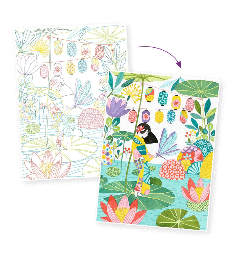 Choose to follow the colour palette and templates suggested by the artists, or let imaginations run wild. Each sheet is printed on fine art-grade paper that is thick and has a slight grain, giving the perfect surface to create beautiful works of art.