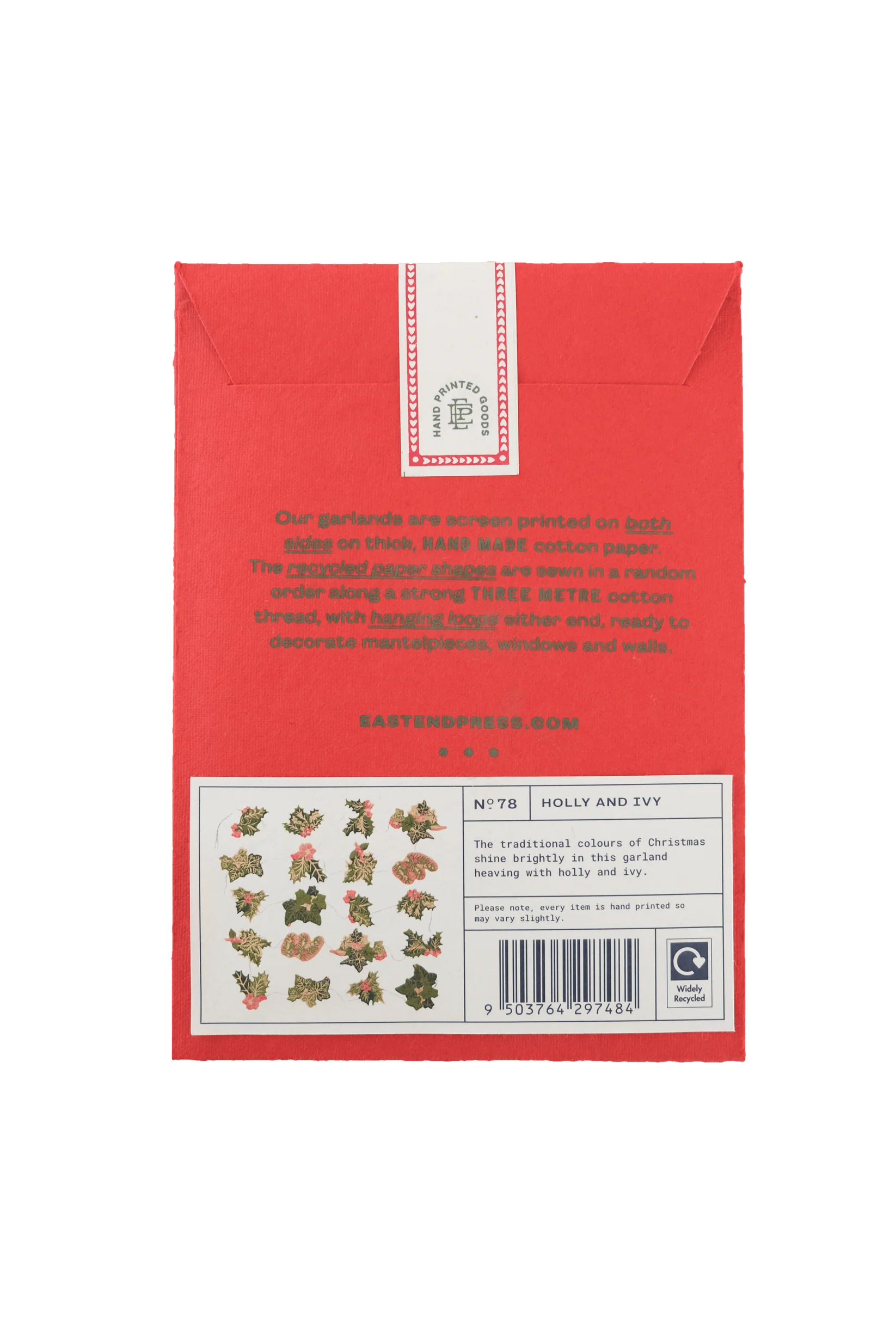 East End Press Holly and Ivy Sewn Garland