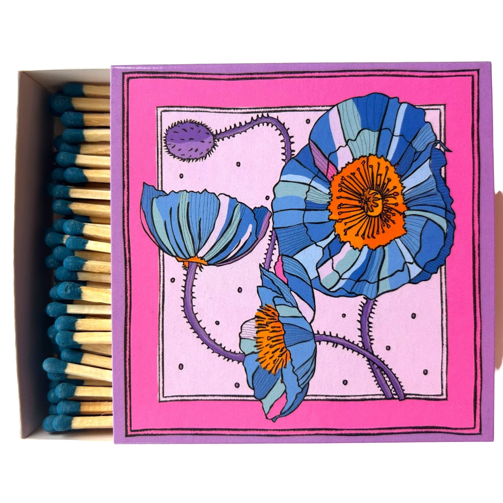 Whether you’re lighting candles for a cozy night in, setting the mood for a dinner party, or looking for the perfect gift, our Blue Poppies matches are ideal.