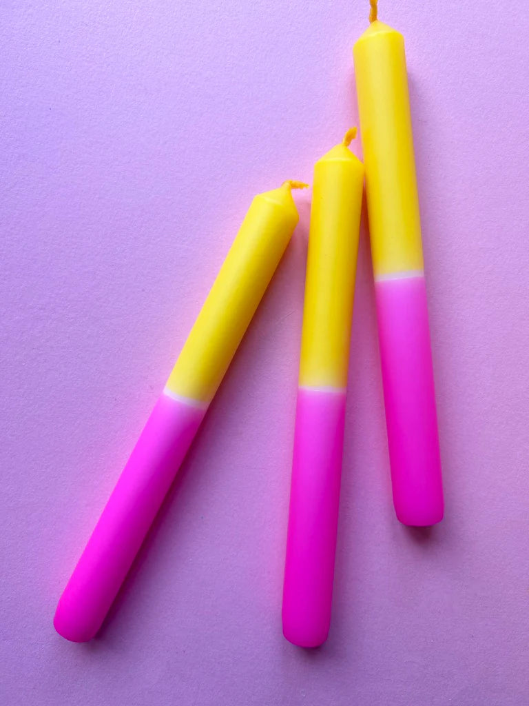 The Colour Emporium FLAXEN FUSCIA Dip Dye Dinner Candle Trio